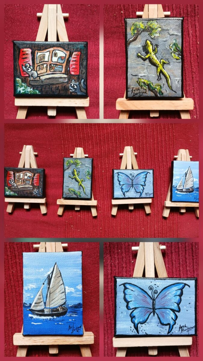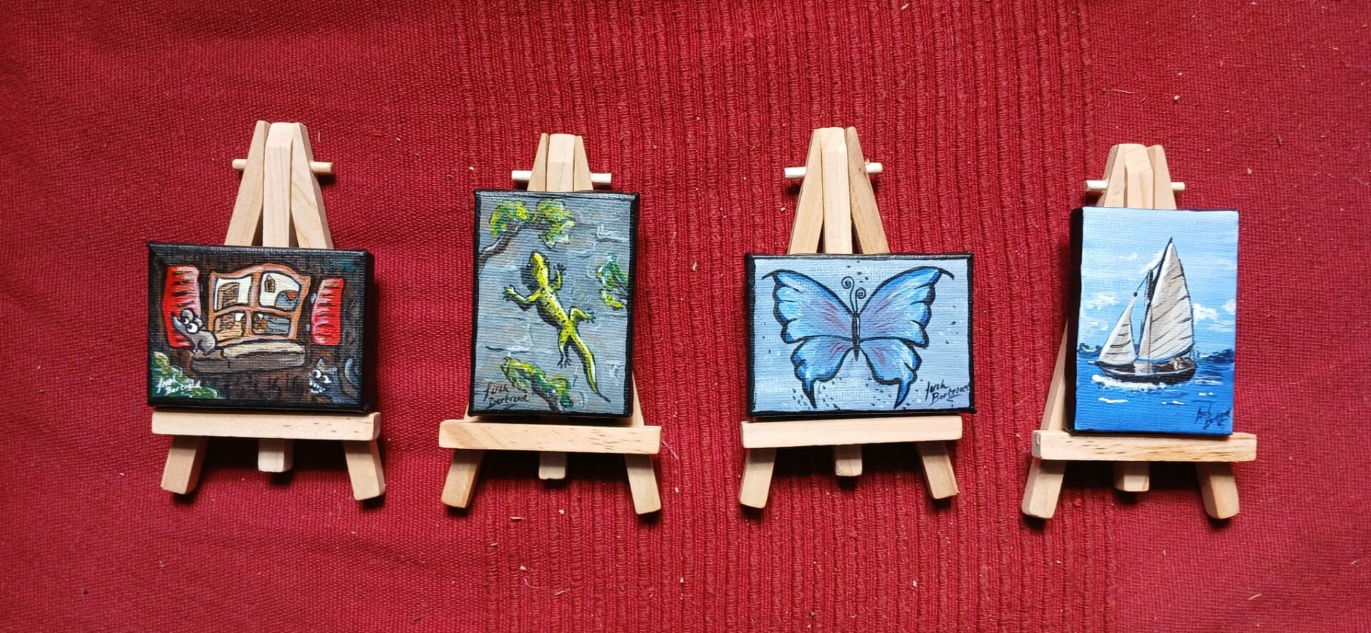 Explorez les créations uniques de TISABORA, où peinture, bois et métal fusionnent en œuvres artisanales.